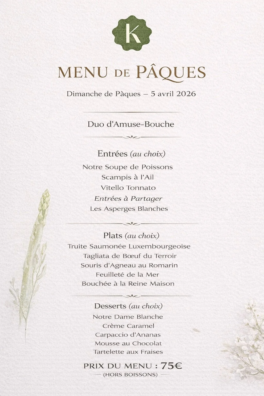 Dimanche Pâques 5 avril 2026 (ouvert midi et soir)