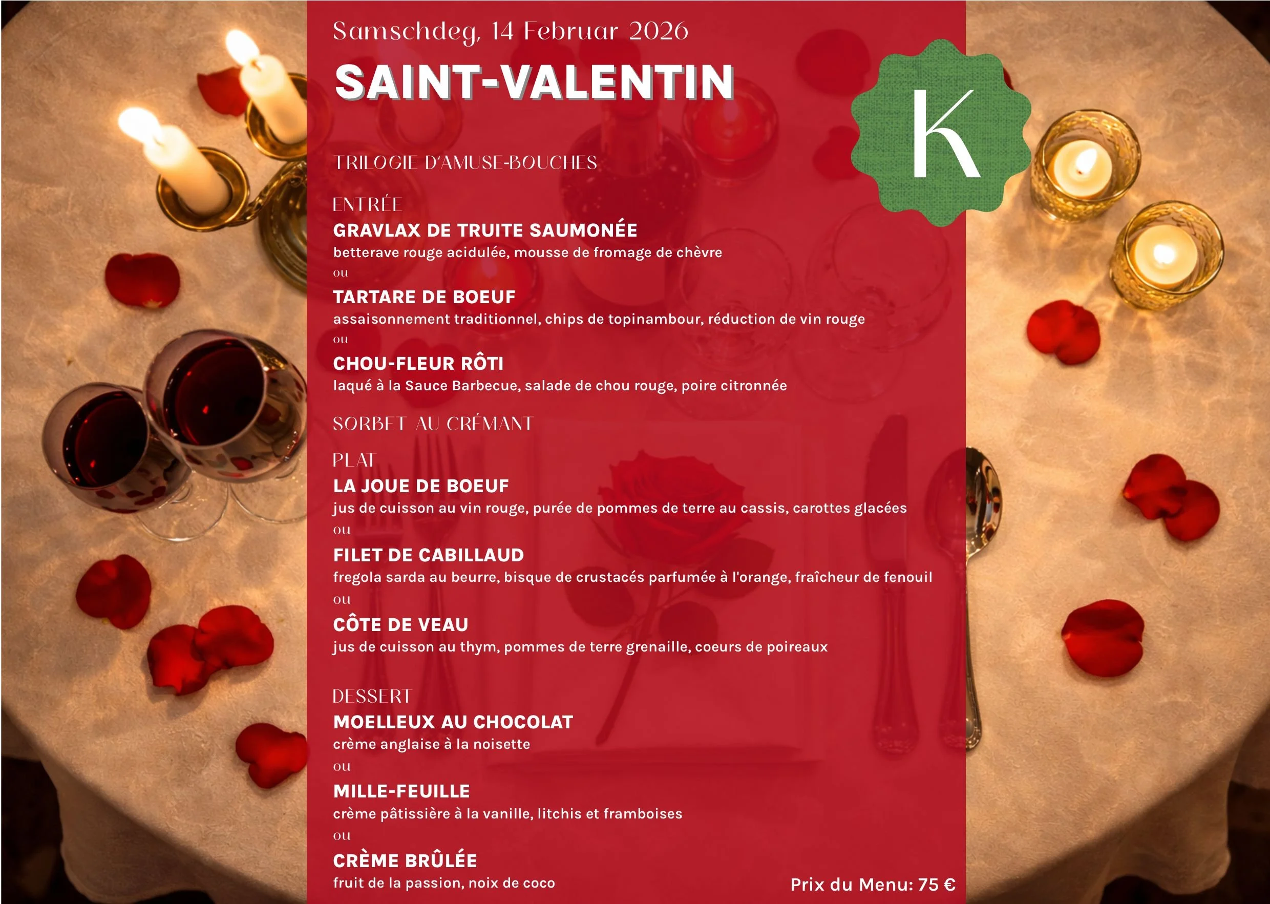 Saint-Valentin 14 février 2026 - (ouvert midi et soir)